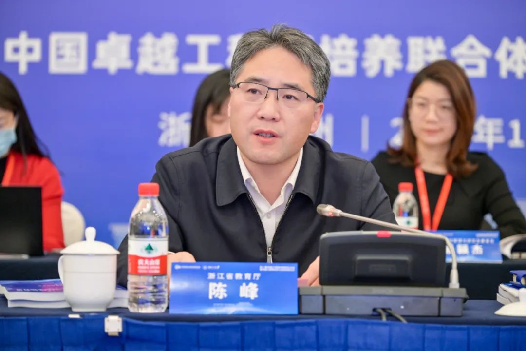 陈峰在会议上致辞。他代表浙江省教育厅热烈欢迎各位领导和专家到杭州参加会议。他表示,近日浙江对加快建设创新浙江、因地制宜发展新质生产力作出战略部署,着力推动教育科技人才一体改革发展,强化科技创新和产业创新深度融合。他指出,培养工程师尤其是培养卓越工程师,是培育发展新质生产力促进经济高质量发展的重要途径。近年来浙江大学工程师学院积极探索学历学位工程师职称三证合一改革,在工程师培养和工程教育方面取得了一些成绩,为建设创新浙江、制造强省提供了重要的人才支撑。他希望与会专家学者对浙江省的高等教育尤其是工程教育提出批评和建议,帮助浙江省深入研究卓越工程师培养认证标准,整体提升工程师教育质量。